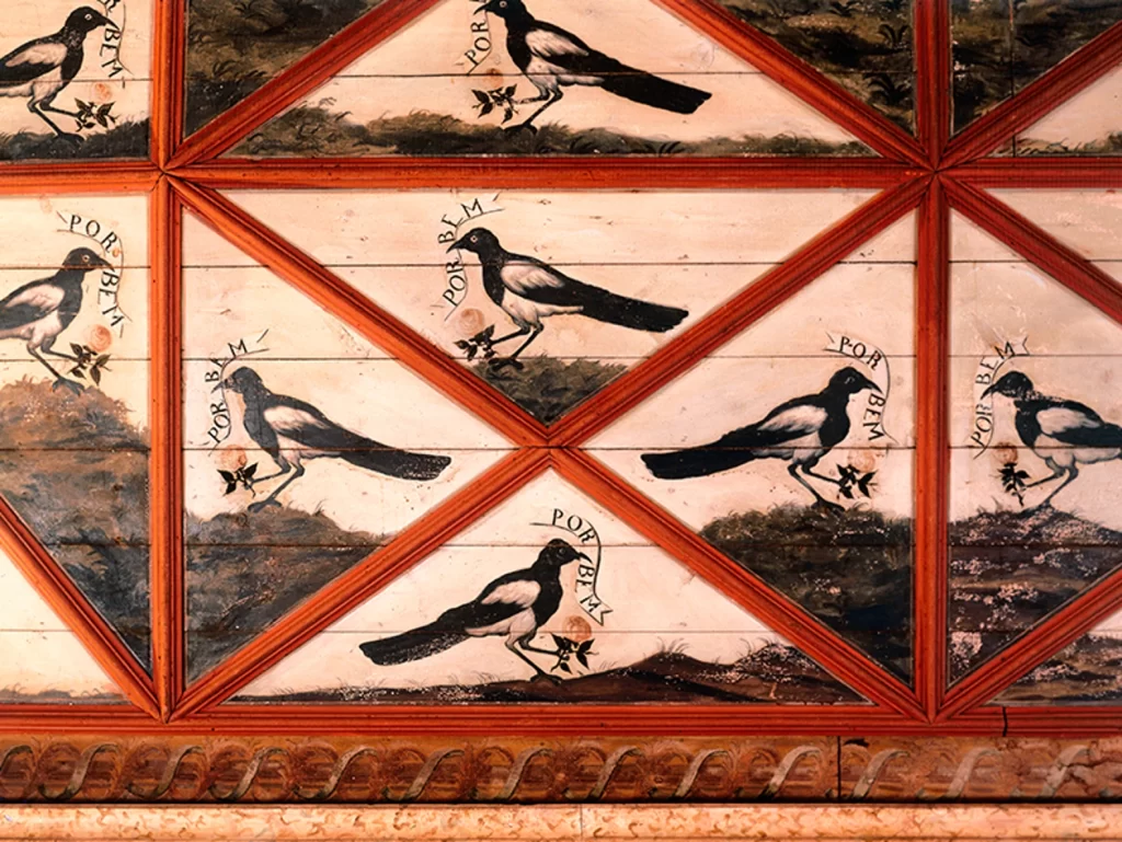 Immediately, we notice that these birds are chattering amongst themselves – ‘Por Bem’ (“For Good”) they say. But what, across the space of so many hundreds of years (this ceiling is the oldest in the Palace) are these birds really trying to tell us?